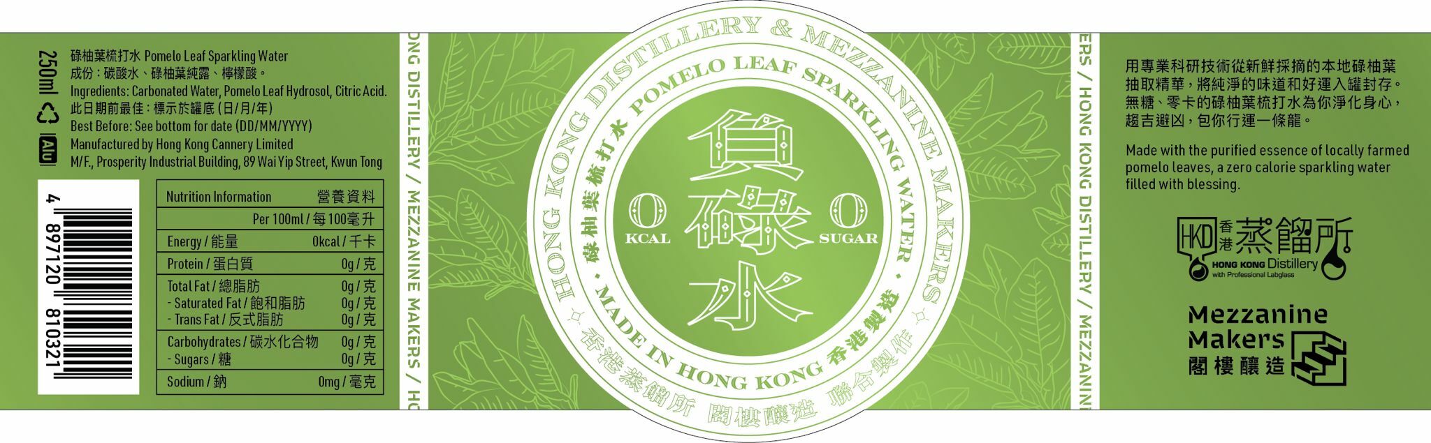 香港蒸餾所伙拍閣樓釀造聯合製作全港首款碌柚葉梳打水,用專業科研技術從新鮮採摘的當季本地碌柚葉抽取精華,將純淨的味道和好運入罐封存。無糖、零卡零負擔的碌柚葉梳打水為你淨化身心,趨吉避凶,包你行運一條龍。