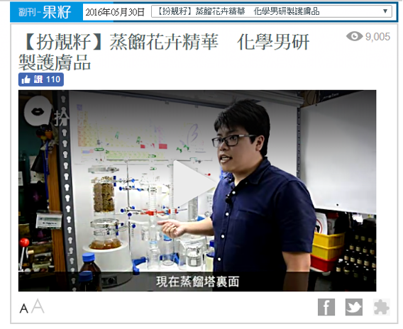作為香港少數擁有原料提煉技術的公司,香港蒸餾所榮獲<<蘋果動新聞>> <<蘋果日報>> <<果籽>> 專訪。花草精華液 (Extract)和精油 (Essential Oil) 是手工護膚品的靈魂,原料提煉技術可以令我們不再受限於供應商在原料上加入令皮膚致敏的防腐劑及殘餘農藥,確保產品達至真正的純天然、零污染,令質素更上一層樓。