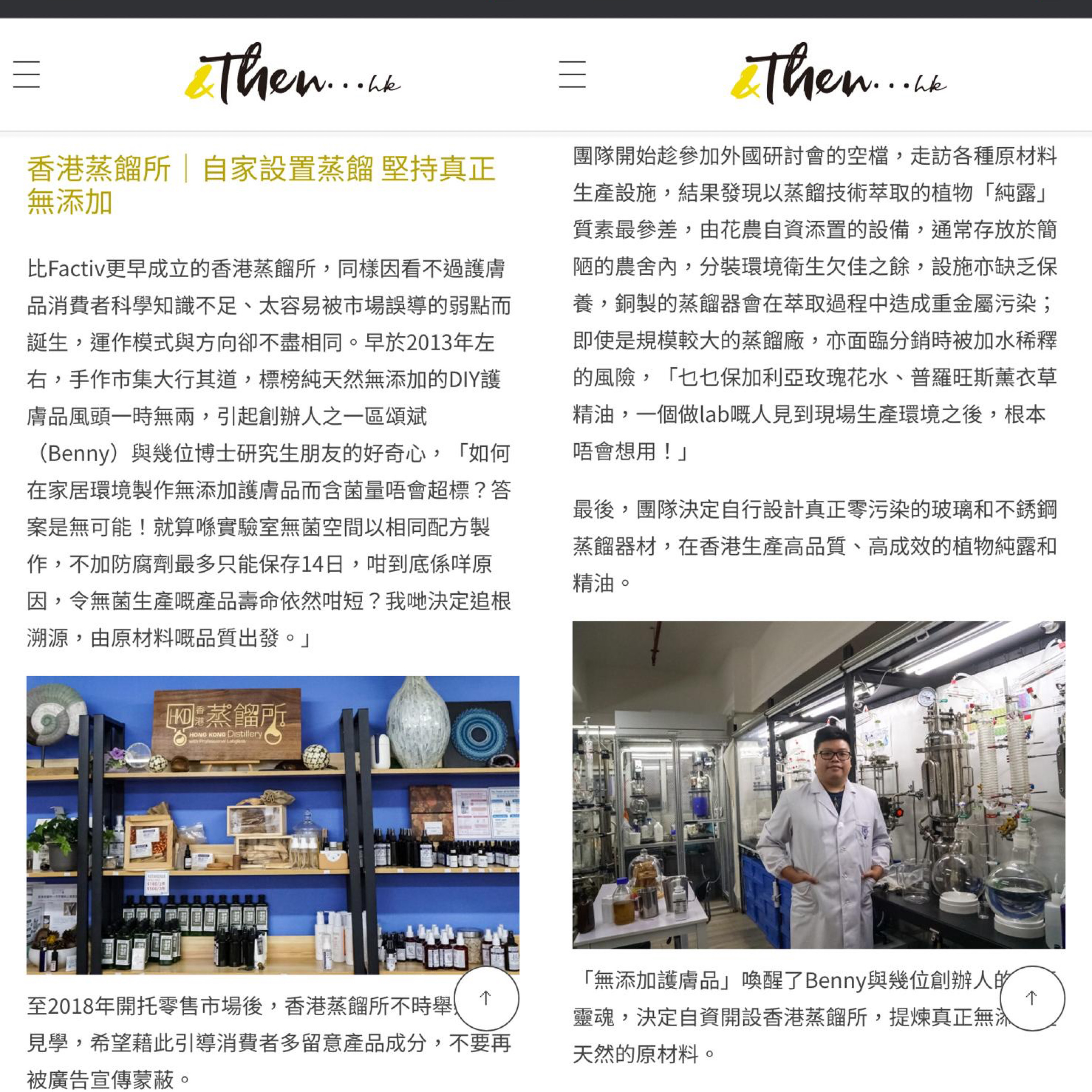 節錄:今次介紹的香港蒸餾所,由一班專業科研人員組成,堅持在香港自己生產這些原材料,或製作成自己品牌的產品,或幫助其他品牌代工生產。到目前為止已經蒸餾過五百種以上的植物。他們從機器設計,生產及包裝都經過嚴格的把關,確保產品新鮮無污染。
