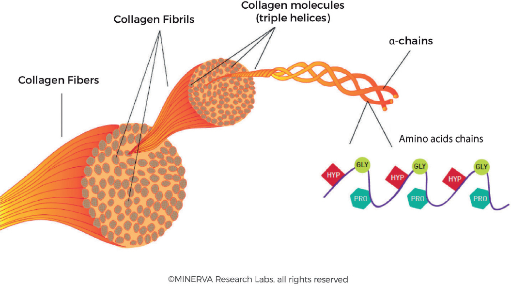 膠原蛋白(Collagen)是人體最重要的蛋白質之一,擁有強大的伸展能力,用於支撐皮膚結構。它通常存在於結締組織之中,亦是人體細胞外基質的主要組成部分。膠原蛋白的生成能使皮膚保持緊緻和彈性,而膠原蛋白的流失和老化則會使肌膚失去彈性,令皮膚出現皺紋。