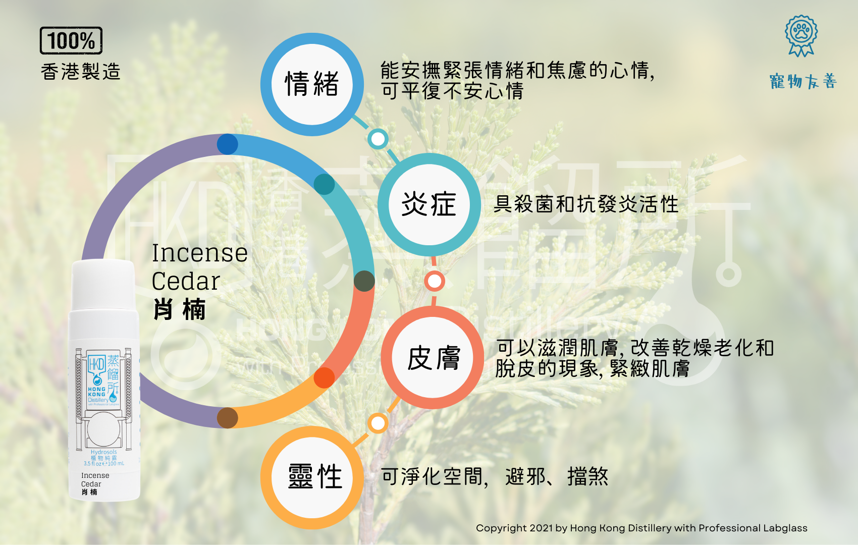 功能 : 具殺菌和抗發炎活性; 能安撫緊張情緒和焦慮的心情, 令人心情平復; 可以滋潤肌膚, 改善乾燥老化和脫皮的現象, 緊緻肌膚