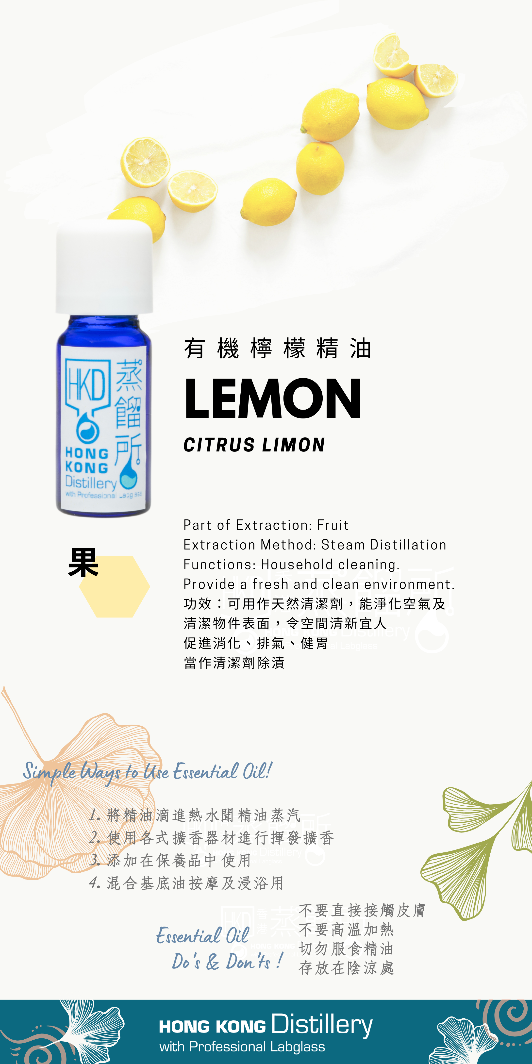 檸檬精油可用作天然清潔,能夠淨化空氣及物件表面,令空間清新宜人。