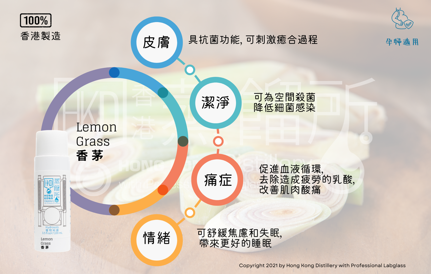 功能 : 具抗菌功能, 可刺激癒合過程; 可舒緩焦慮和失眠, 帶來更好的睡眠; 可促進血液循環, 去除造成疲勞的乳酸, 改善肌肉痛