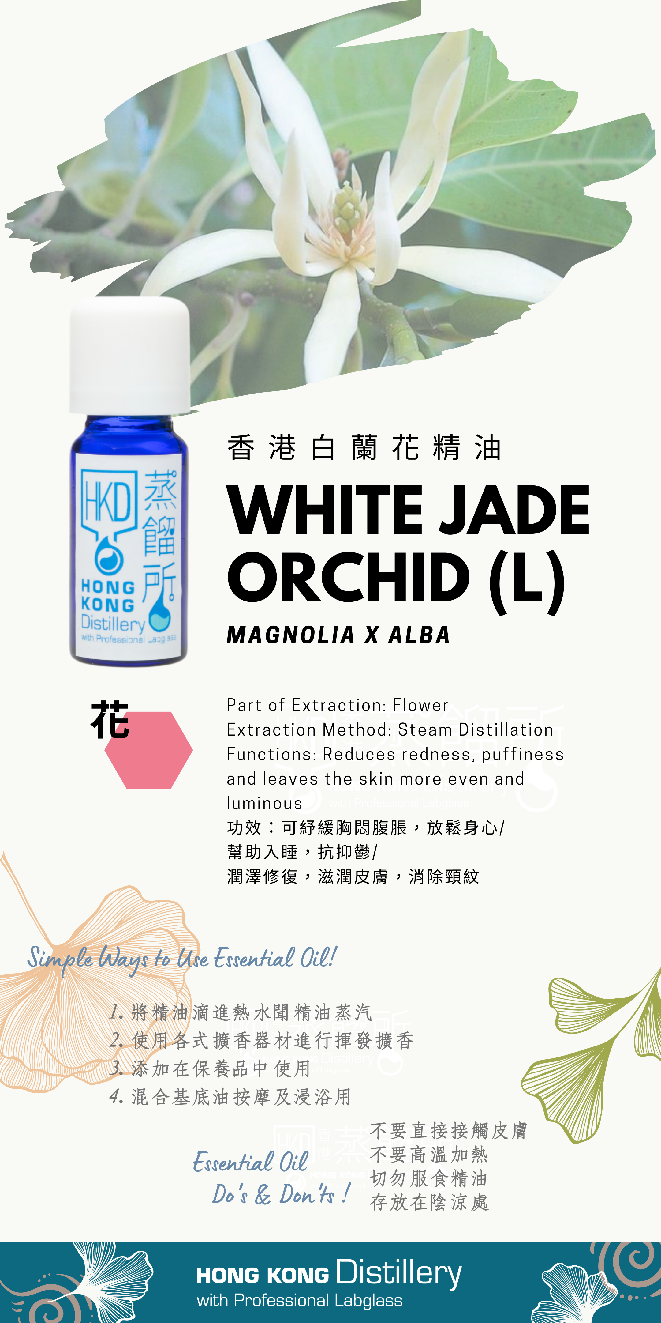 功能 : 可紓緩胸悶腹脹; 可潤澤修復, 滋潤皮膚, 消除頸紋; 可放鬆身心, 幫助入睡, 抗抑鬱