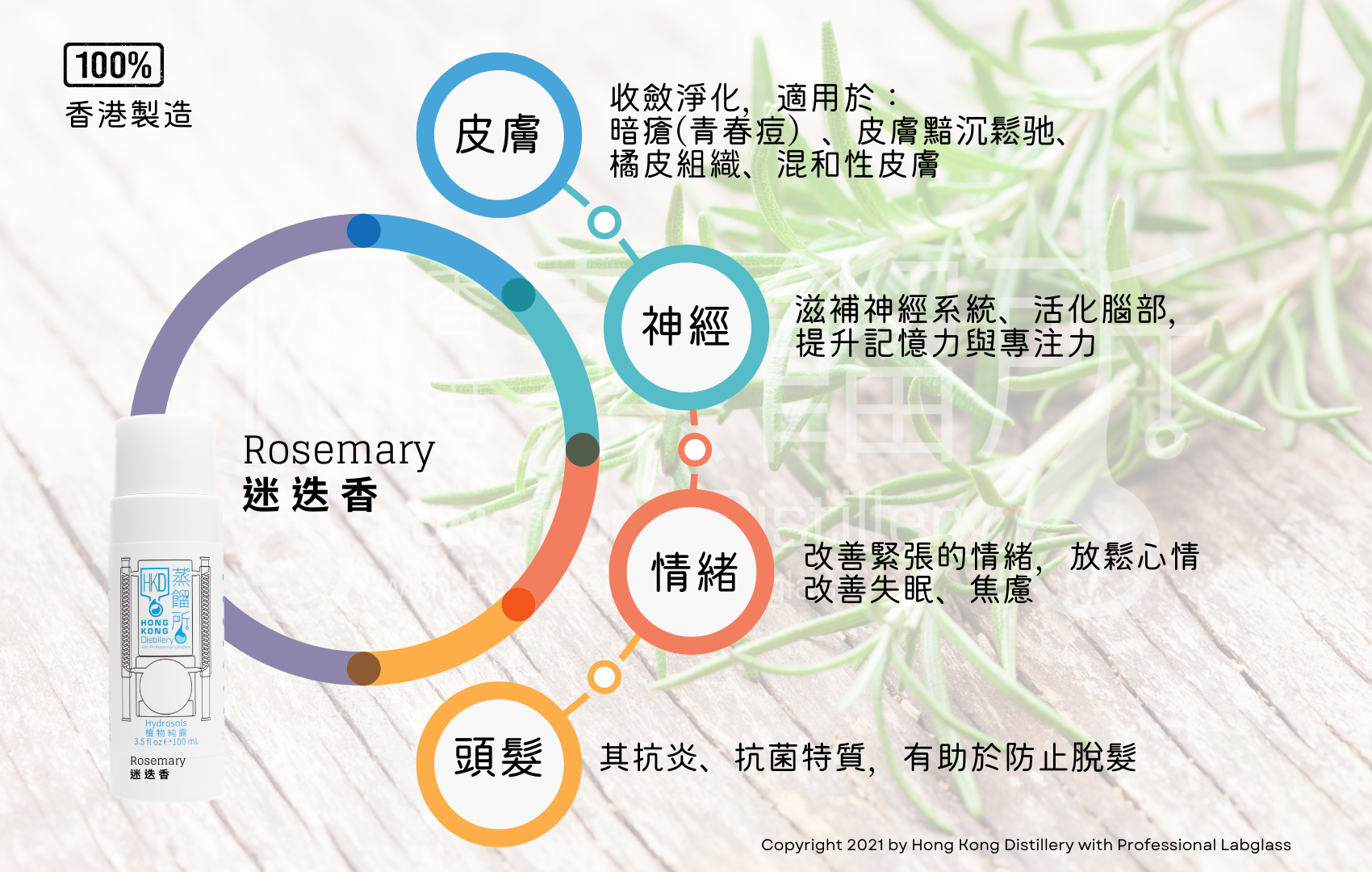 功能 : 可減輕頭痛症狀, 增強記憶, 能增強腦部的功能; 可美容去斑, 減少皺紋的產生, 讓皮膚更緊實, 有彈性