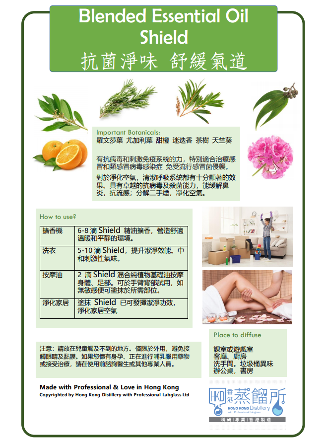 我們的 Shield 守護盾複合精油 是由六種天然精油經芳療師精心調配而成,專為增強免疫力和抵抗病毒而設計。